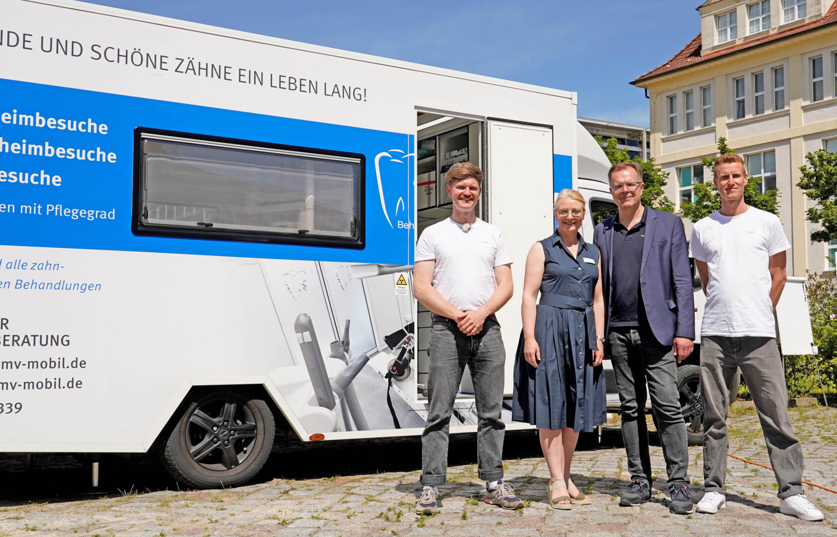 Bei einem Zwischenstopp an der Klinik und den Polikliniken für Zahn-, Mund- und Kieferheilkunde „Hans Moral“ der Unimedizin Rostock konnten Mediziner und Studenten der Zahnmedizin einen Eindruck von dem Bus erhalten, in dem sie vielleicht bald selbst zum Einsatz kommen. Prof. Dr. Franka Stahl, stellvertretende Geschäftsführende Direktorin der Klinik und Polikliniken für Zahn-, Mund- und Kieferheilkunde, ist überzeugt von dem Projekt: „Insbesondere pflegebedürftigen Patienten fällt die Mundhygiene und die Pflege des Zahnersatzes zunehmend schwerer, und dabei ist es gerade im Alter wichtig die eigenen Zähne so lange wie möglich erhalten zu haben. Hausbesuche sind für niedergelassene Zahnärzte aber keine Option. Da steht besonders die Versorgung auf dem Land und in den Pflegeeinrichtungen vor großen Herausforderungen. Deswegen hoffe ich sehr, dass sich viele Zahnärzte für die Arbeit in der mobilen Praxis begeistern lassen.“