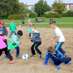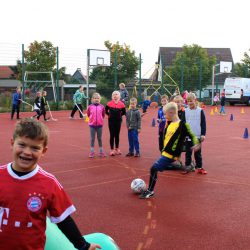 Beim Sportmobil auf dem Schulhof hatten alle Schüler die Möglichkeit, auf eine Torwand zu schießen, Hockey zu spielen, Roller und Pedalo zu fahren oder sich auf der Hüpfburg auszutoben. Am Volksbad konnten die Mädchen und Jungen bei schönstem Herbstwetter Fußball und Ball-über-die-Schnur spielen. Die Frühstückspause gestaltete jede Klasse selbst. So machten manche ein gemütliches Picknick im Grünen und andere ein Buffet in ihrem Klassenraum.