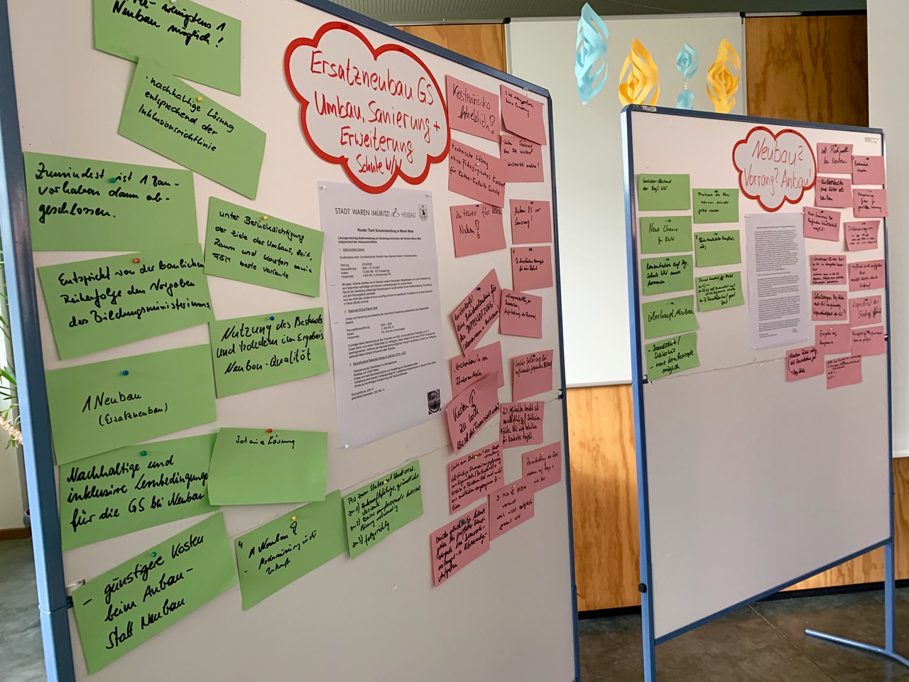 Also sucht man jetzt nach einer neuen Lösung. Und dafür gab es den Runden Tisch, der zugegebener Maßen, für viele gewöhnungsbedürftig war. Denn die Teilnehmer diskutierten nicht einfach nur, sondern wurden vom Stadtpräsidenten aufgefordert, Pro und Kontra auf verschiedenen farbigen Karten zu formulieren. So ein bisschen kam da bei Rüdiger Prehn sicher auch der Lehrer durch, aber die Methode macht Sinn, denn die Antworten der Teilnehmer können den Stadtvertretern jetzt helfen, wirklich eine Lösung zu finden – spätestens auf ihrer Sitzung am 18. September. Denn da müssen sie richtig Farbe bekennen.