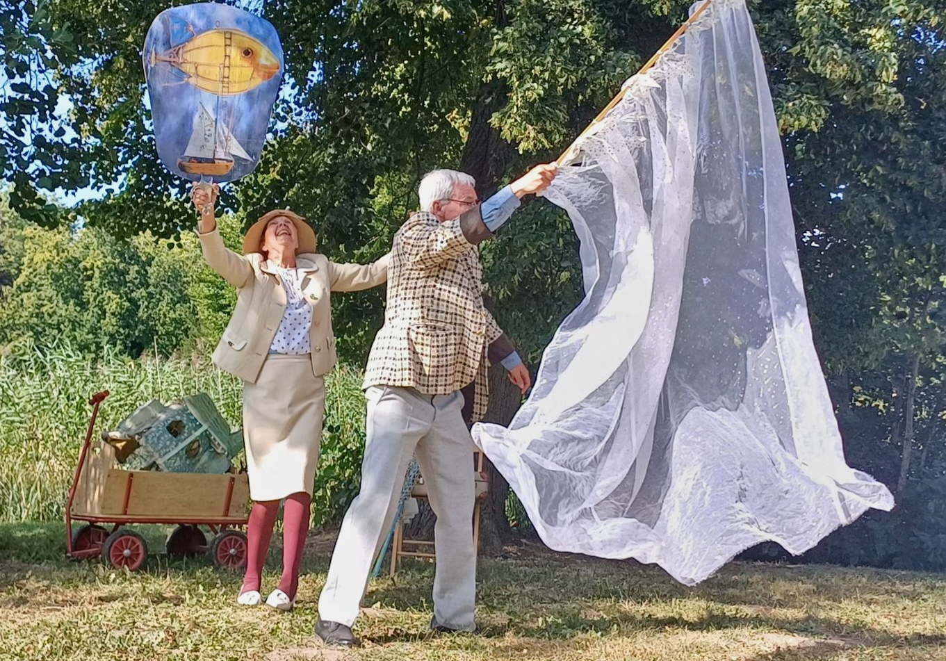 Die unterhaltsame Inszenierung stammt von Ute Kotte (Theater Maskotte) und Jürgen Wicht (Wicht-Theater) und verbindet Puppenspiel, Schauspiel und Erzählkunst zu einem kurzweiligen Theaterabend unter freiem Himmel.