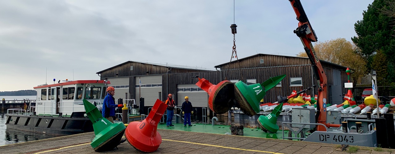 Wenn die Urlaubssaison zu Ende geht, beginnt für die Mitarbeiter des Wasser- und Schifffahrtsamtes Lauenburg, Außenbezirk Waren, quasi die Hochsaison: Sie haben in dieser Woche begonnen, die Tonnen aus den Seen der Region zu holen.