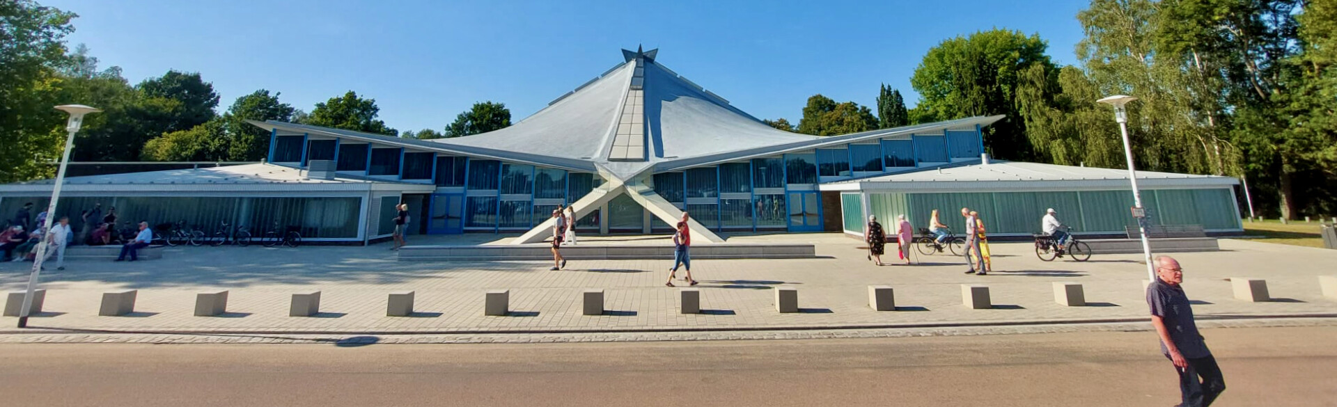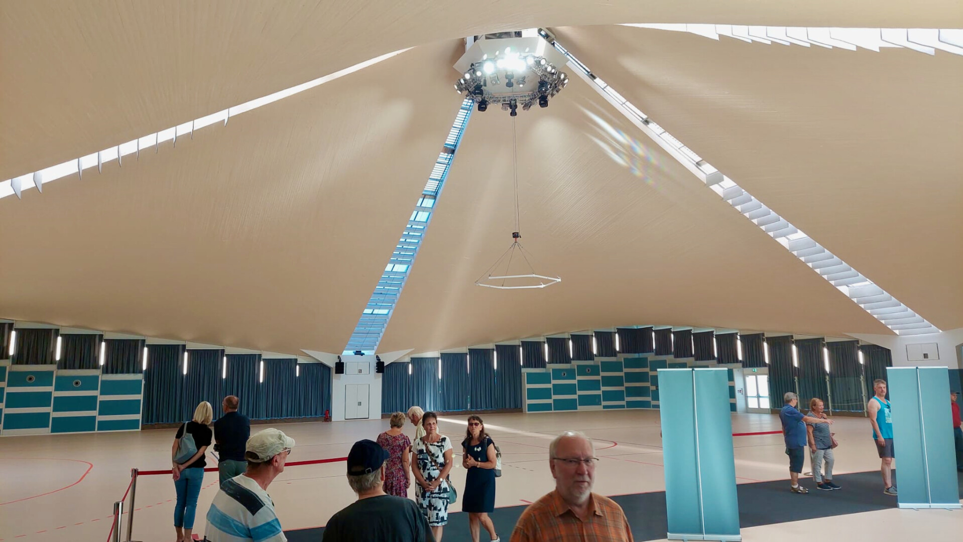 Die Stadt Neubrandenburg hat ihre auch überregional bekannte Stadthalle saniert und so dem Architekten Ulrich Müther (1934-2007) und den damaligen Bauarbeitern ein Denkmal gesetzt. Mehr als 1500 Besucher ließen es sich am Wochenende nicht nehmen, durch die riesige 42 mal 42 Meter große Halle aus Beton-Hyparschalen zu spazieren. Dabei wurden auch die neuen Umkleidemöglichkeiten und sanitären Anlagen sowie die Frauenplastik im verglasten Innenhof bestaunt– und auch genutzt. Insgesamt drei Jahre hat die Stadthallensanierung gedauert.