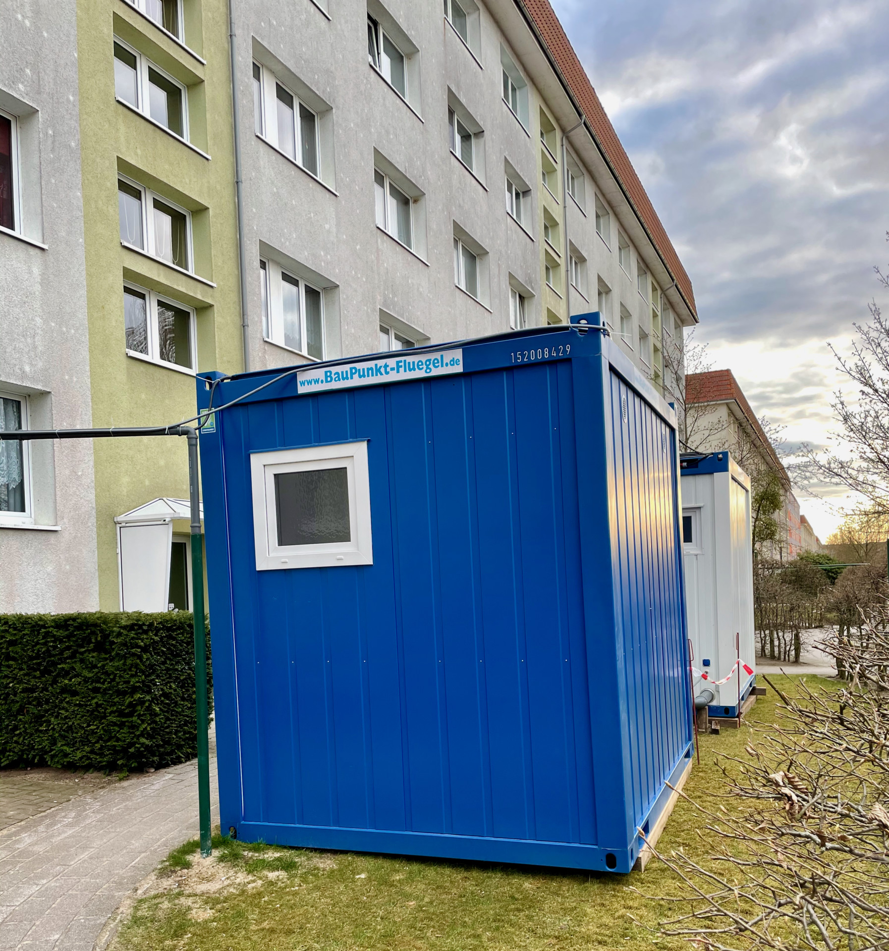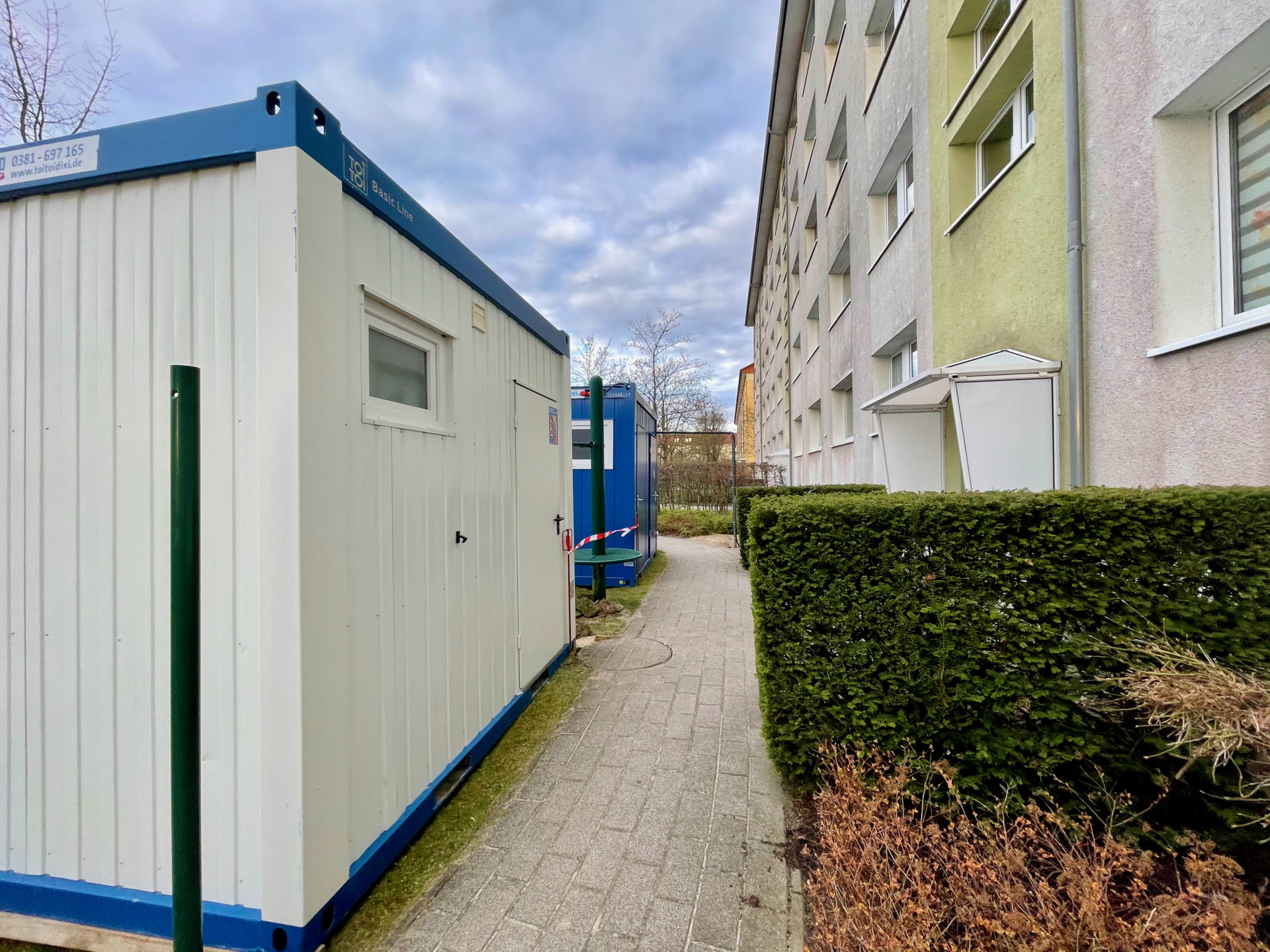 Während des Austausches der Leitungen müssten die Mieter die Dusche im Container und die Toiletten vor der Tür nutzen. Das sei anders nicht zu bewerkstelligen. Betroffen seien pro Aufgang jeweils die Mieter von fünf Wohnungen, durchschnittlich müssten sich also zehn Menschen die Toiletten und Duschen für jeweils zwei Wochen teilen. „Wir haben natürlich besondere Hygienevorschriften, die Sanitäranlagen werden jeden Tag gereinigt. Die Handwerker nutzen eine eigene Toilette“, berichtet de Prokuristin.