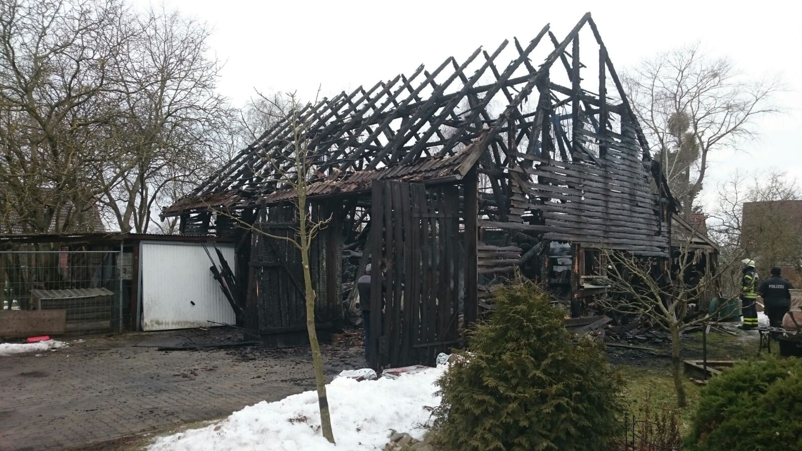 Nicht mehr viel übrig von der großen Scheune, die heute Mittag in Warenshof in Flammen aufgegangen ist. Nach wie vor kann die Polizei keine Angaben zur genauen Schadenshöhe machen.