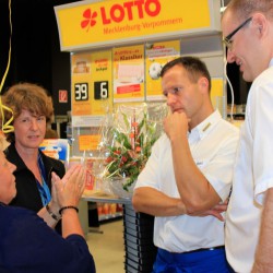 Noch bis Ende dieser Woche läuft zur Eröffnung des alten, neuen Marktes ein Gewinnspiel. Wer weiß, wie viele Artikel in der Teterower Straße verkauft werden, die Lösung auf ein Zettelchen schreibt und in den dortigen Briefkasten wirft, hat die Chancen auf einen von 25 Gutscheinen über 20 Euro oder auf den großen Präsentkorb im Wert von 100 Euro. Die Lösung findet man übrigens, wenn man mit offenen Augen durch den Markt geht.