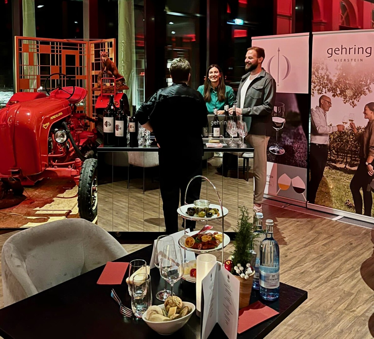 Highlights wie Caesar Salad aus dem Parmesanlaib, gezupfter Lachs und geschmorte Ochsenbacke begeisterten die Gäste. Begleitet wurden die Gerichte von erlesenen Weinen des langjährigen Schloss-Partners Weingut Gehring, die das Geschmackserlebnis perfekt abrundeten.