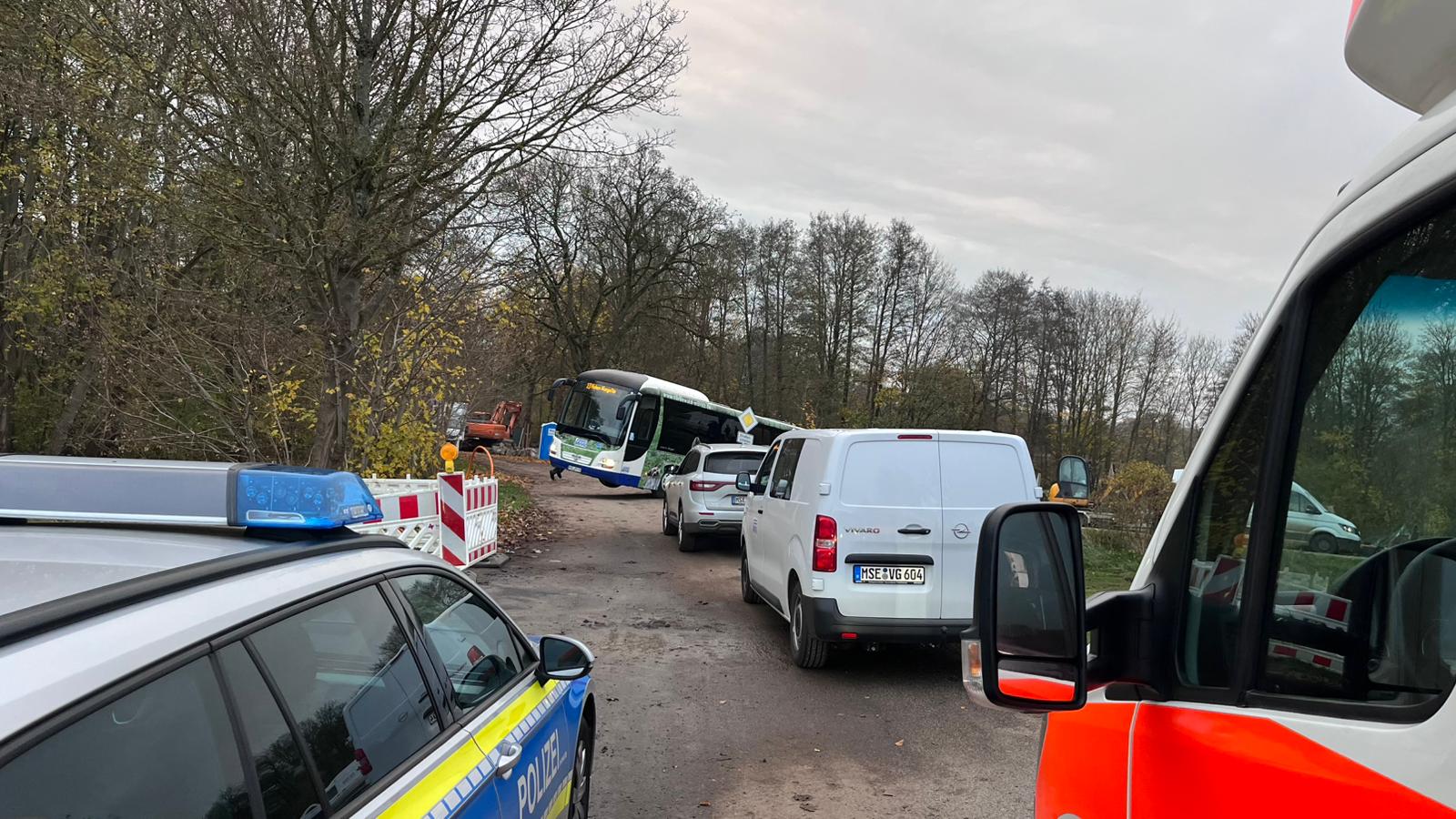 Bei einem Schulbusunfall in Schloss Grubenhagen sind heute Nachmittag mindestens vier Kinder leicht verletzt worden. Nach Angaben der Polizei kam der Bus, in dem insgesamt 18 Mädchen und Jungen saßen, in einem Baustellenbereich auf weichen Untergrund und kippte dann etwas zur Seite. Der Bus hing mit der Front quasi in der Luft. Die jungen Passagiere gerieten teilweise in Panik, vier Rettungswagen aus verschiedenen DRK-Wachen und zwei Notärzte waren sehr schnell zur Stelle. Auch besorgte Eltern machten sich auf den Weg. Vier Kinder mit leichten Verletzungen wurden vorsorglich ins Krankenhaus gebracht, Mitarbeiter der MVVG kümmerten sich um die Bergung.