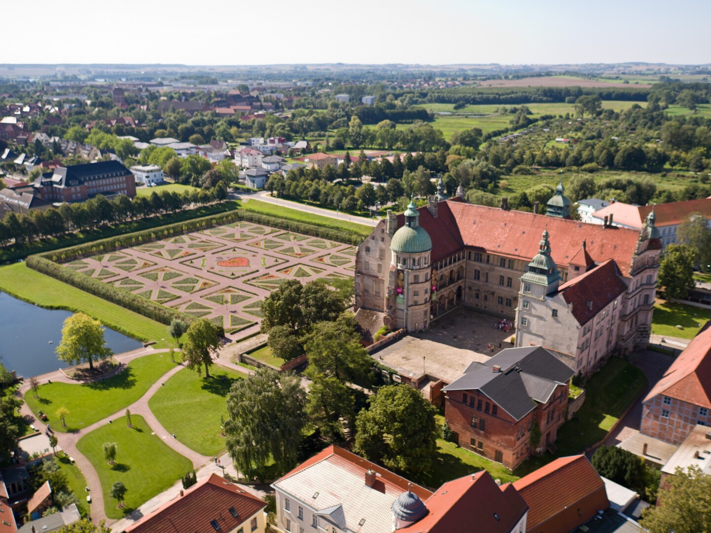 Derzeit wird die Außenhülle des Schlosses Güstrow restauriert. Während der Restaurierungsarbeiten sind nun am Nordflügel hinter dem Teil einer Mauer an der Ostwand beinahe farbfrische Reste von Wandmalereien gefunden. „Die überraschend entdeckten Wandmalereien sind ein großartiger historischer Fund – und auch für die Geschichtsschreibung relevant. Denn damit können wir nun die historische Vermutung bestätigen, dass Philipp Brandin, der den Nordflügel von 1587 bis 1591 erbaut hat, diesen Teil um ein weiteres Geschoss erhöht hat“, so der für den Landesbau zuständige Finanzminister Heiko Geue.