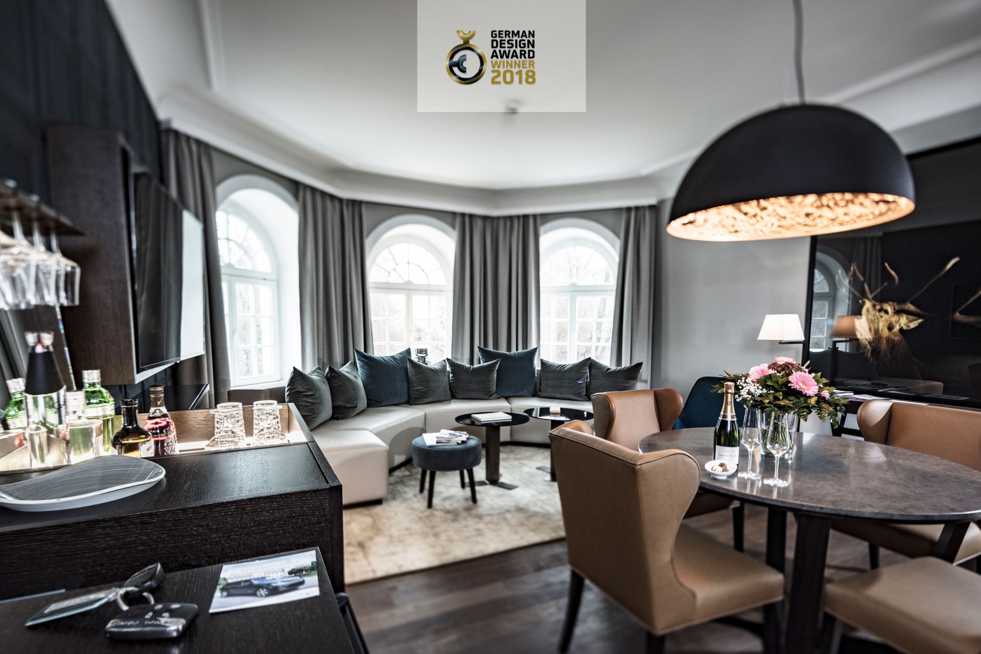 Ein weiterer bedeutender Designpreis für das Schlosshotel Fleesensee: Nach der Verleihung des ICONIC Award am 4. Oktober freut sich das Team des Hotels gemeinsam mit dem Innenarchitekturbüro Kitzig Interior Design über die Auszeichnung mit dem renommierten German Design Award in der Kategorie „Excellent Communication Design, Interior Architecture“. Dank des besonders außergewöhnlichen Designkonzepts konnte sich das 2016 umfangreich renovierte und modernisierte Schlosshotel gegen mehr als 2.000 Einreichungen durchsetzen. Die Preisverleihung findet im Rahmen der „Ambiente“-Messe am 9. Februar 2018 in Frankfurt statt.