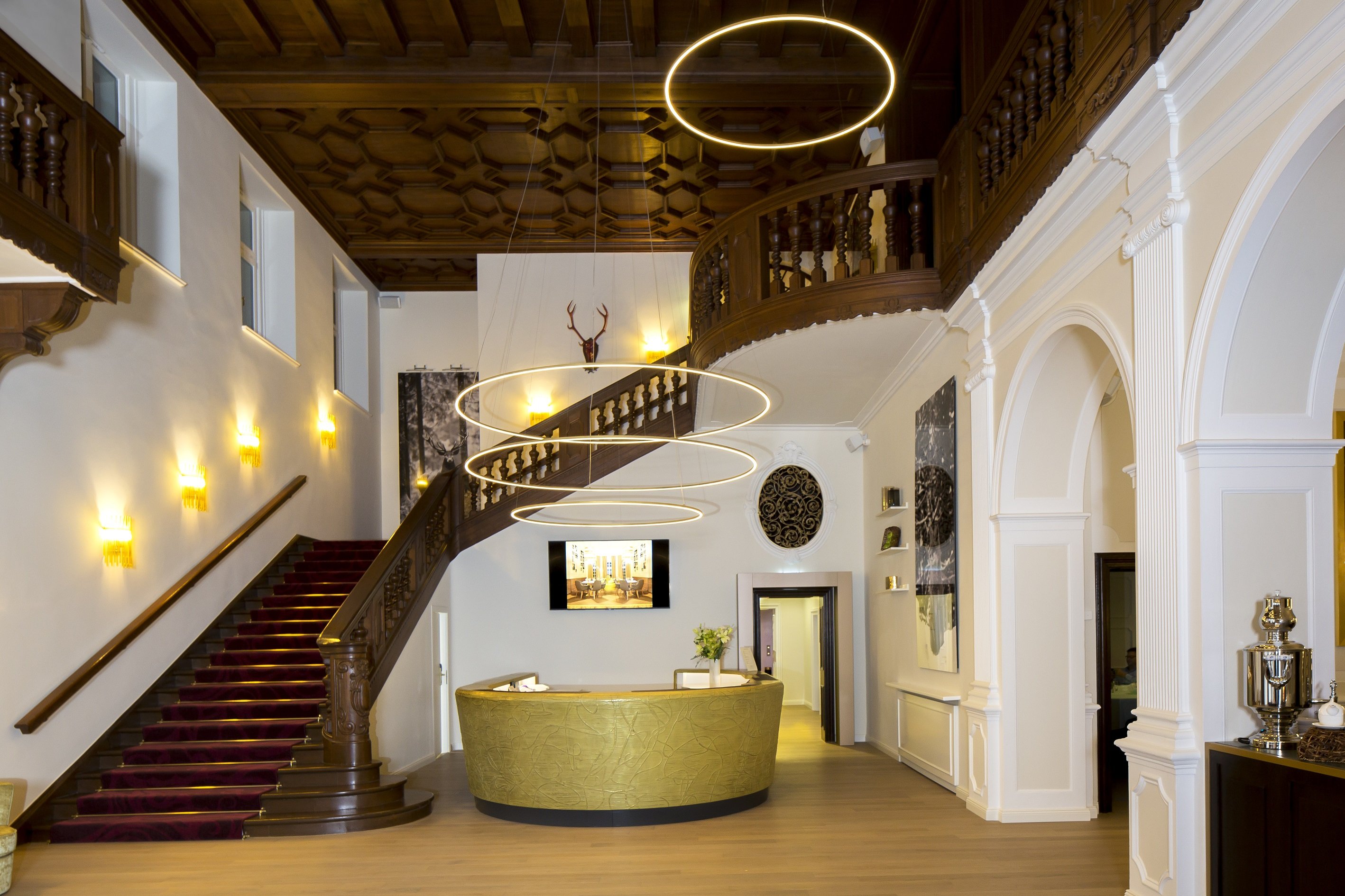 Historische Elemente, verbunden mit modernen Akzenten: Das bietet das Schlosshotel Fleesensee seinen Besuchern. Rund 10 Millionen Euro investierte die Düsseldorfer 12.18. Investment Management GmbH gemeinsam mit dem Versorgungswerk der Zahnärztekammer Berlin nach dem Erwerb des Objekts in dessen Sanierung. Das neue Designkonzept des Hotels stammt aus der Feder des renommierten Innenarchitektenbüros Kitzig Interior Design. Es verbindet die ursprüngliche Architektur des 1842 erbauten Schlosses mit neuen und opulenten Aspekten, wodurch ein einzigartiges Ambiente entsteht.