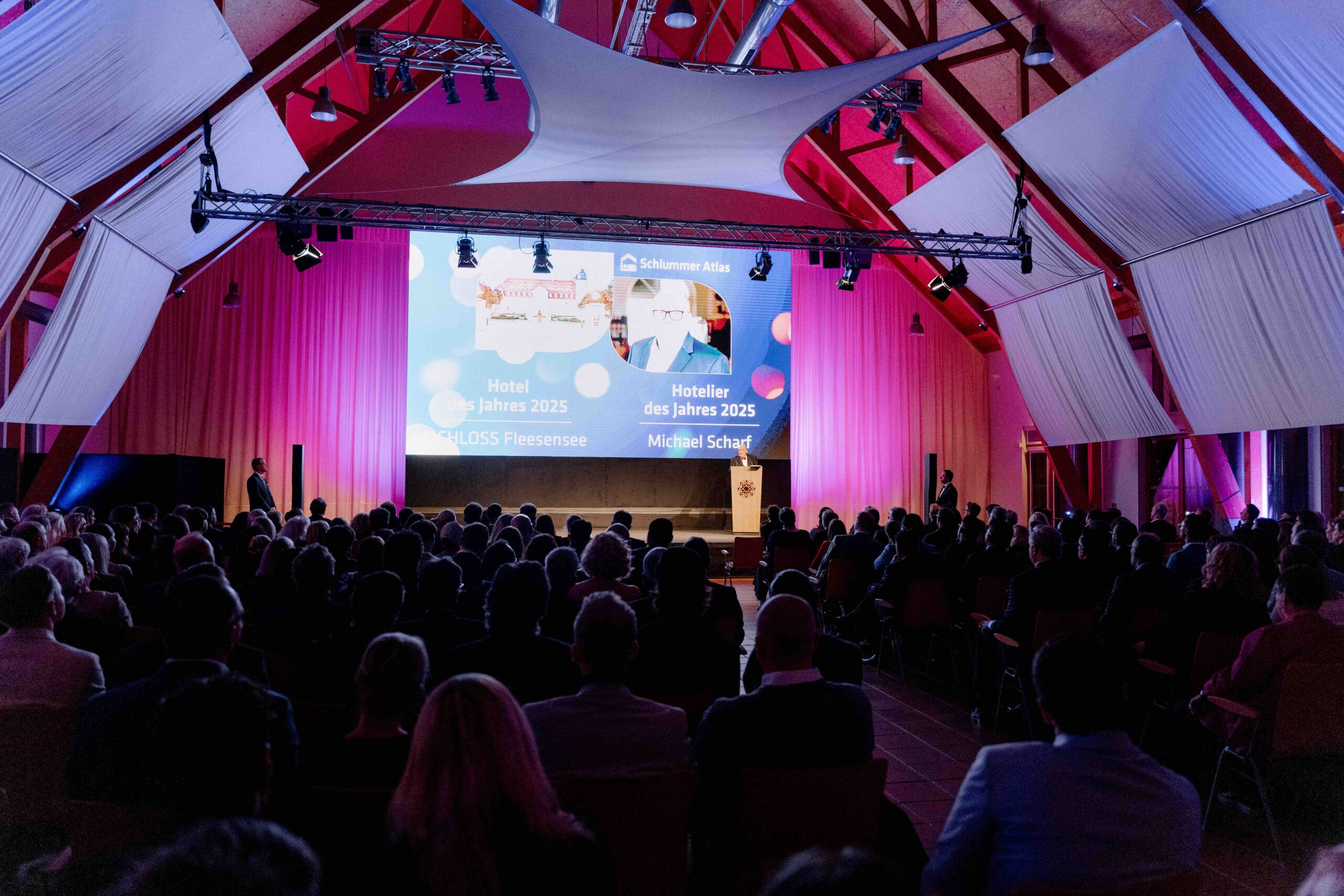 Große Freude für die Fleesensee Hotelbetriebsgesellschaft m.b.H.: Gleich zwei der begehrten Auszeichnungen der diesjährigen Busche Gala (Schlummer Atlas) gingen an das Unternehmen. Geschäftsführer Michael Scharf wurde als „Hotelier des Jahres“ ausgezeichnet, während das Schloss Fleesensee den Titel „Hotel des Jahres 2025“ erhielt. Die Preisverleihung fand am Montagabend erstmals in Mecklenburg-Vorpommern statt – ein besonderer Anlass, der von rund 400 Gästen aus der Hotellerie und Gastronomie gefeiert wurde.