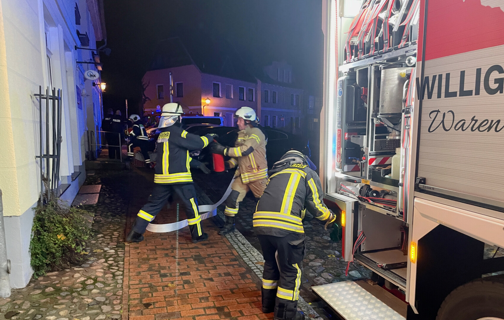 „Das war alles in allem schon eine gefährliche Situation, da hier die Häuser alle Wand an Wand stehen“, erklärte Warens Feuerwehrchef Reimond Kamrath, der ebenfalls sehr froh war, dass in der dicht bebauten Warener Innenstadt nichts Schlimmeres passiert ist.