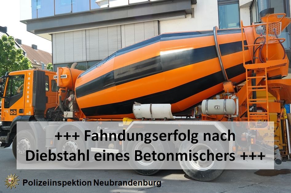 Gegen 4:45 Uhr wurde der Diebstahl des Betonmischers bemerkt. Im Rahmen der Anzeigenaufnahme vor Ort erfuhren die Polizisten, dass der entwendete Betonmischer im Wert von ca. 65.000 Euro mittels GPS geortet werden kann. Wie GPS-Daten verraten, sind die Täter mit dem Betonmischer der Marke Mercedes Benz Actros gegen Mitternacht vom Firmengelände gefahren. Die aktuellste Ortung zeigte eine Bewegung des Fahrzeugs in der Ortschaft Schwedt.