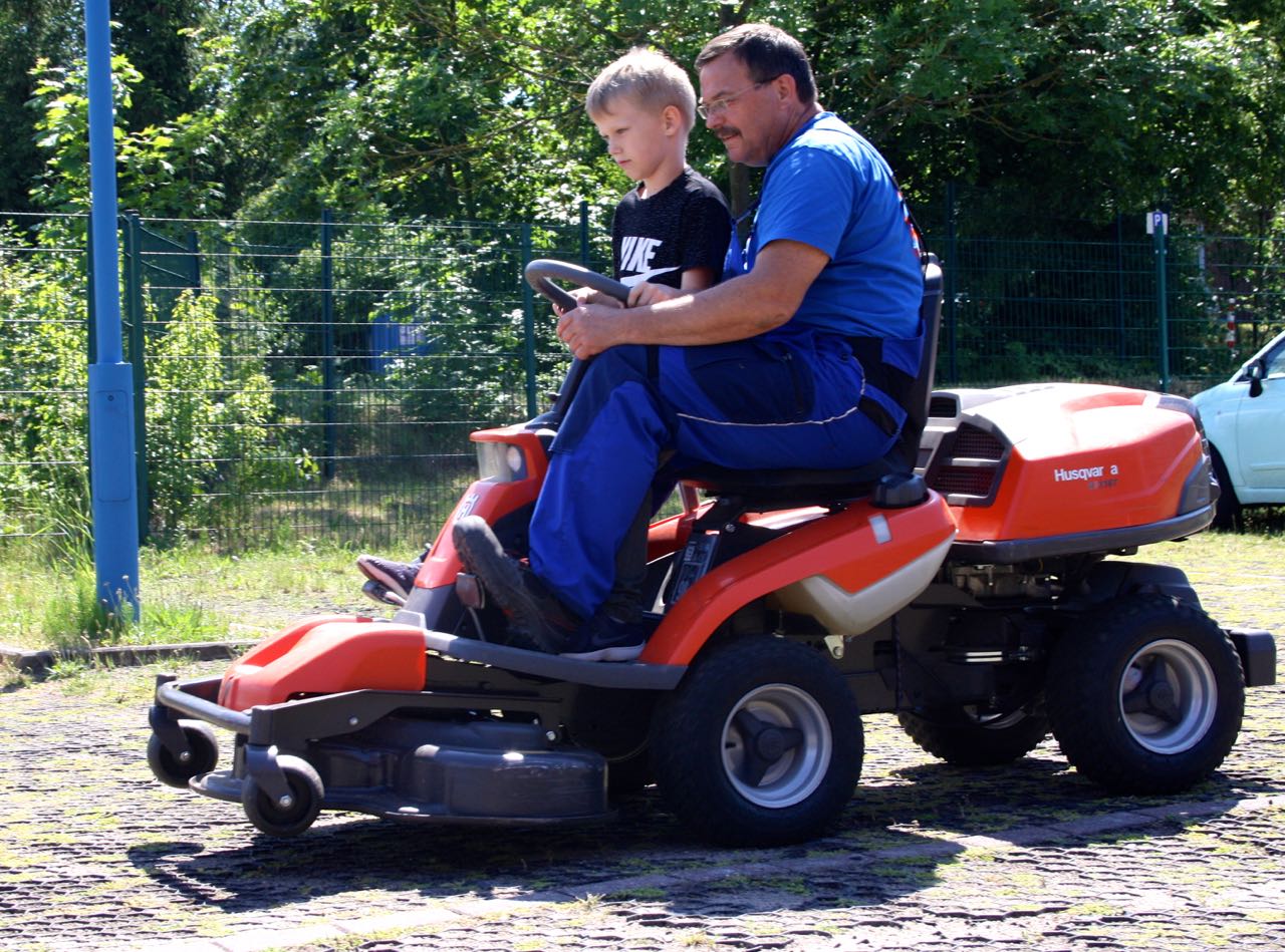 Spannend wurde es auch bei der anschließenden Wohnungsbesichtigung, denn noch suchen sie sich nicht ihr eigenes Heim. Für Action sorgte Hauswart Herr Thierbach, der den Kindern eine kleine Rally auf dem Rasenmähtraktor ermöglichte.