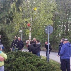 Eine schöne Tradition: In Sophienhof ist der Maibaum noch ein Baum und kein Pfahl: Der wurde heute an die Hauptstraße gesetzt, im Anschluss zogen die Dorfbewohner weiter in die Waldlichtung. Dort werden der Tag gefeiert und beim gemütlichen Beisammensein das Leben auf dem Dorf genossen.