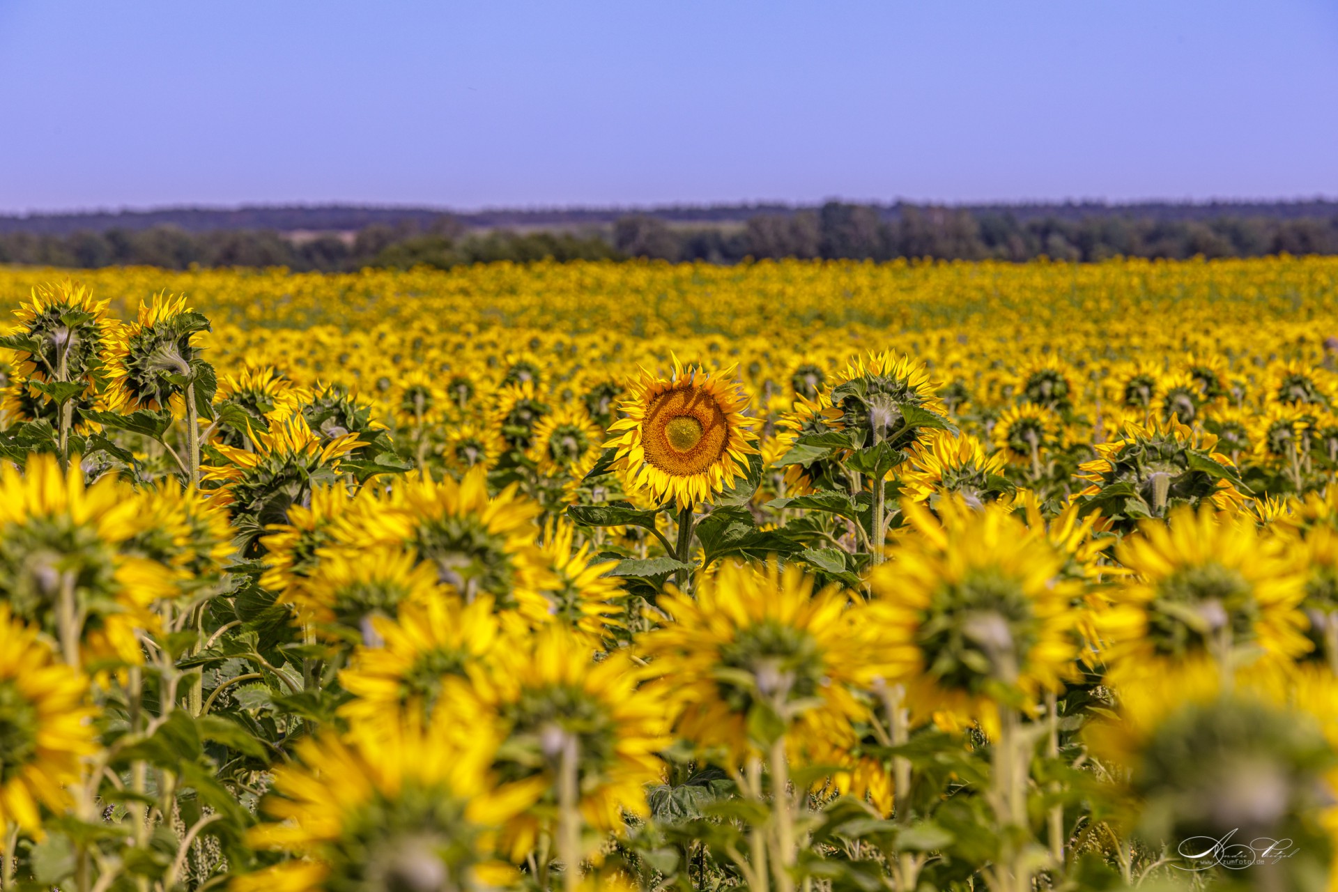 Während sich alle Sonnenblumen von der Sonne wegdrehen, tanzt eine aus der Reihe und macht eine sozusagen ihr eigenes Ding…