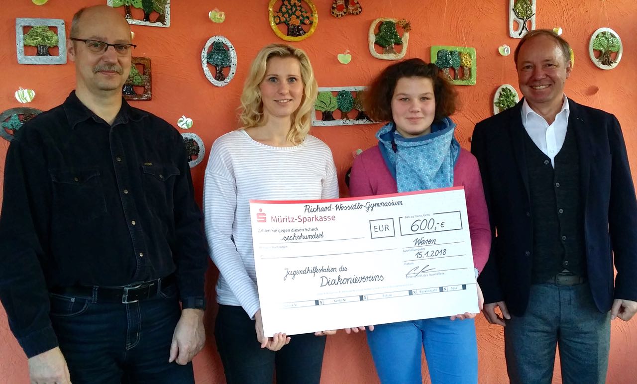 Für Christin Pietschmann hat das Jahr gut begonnen. Sie übernimmt am 1. Februar die Leitung der Jugendhilfestation der Diakonie in Waren und konnte sich jetzt über eine Spende von 600 Euro freuen. Das Geld ist beim Weihnachtskonzert des Richard-Wossdilo-Gymnasiums zusammengekommen.