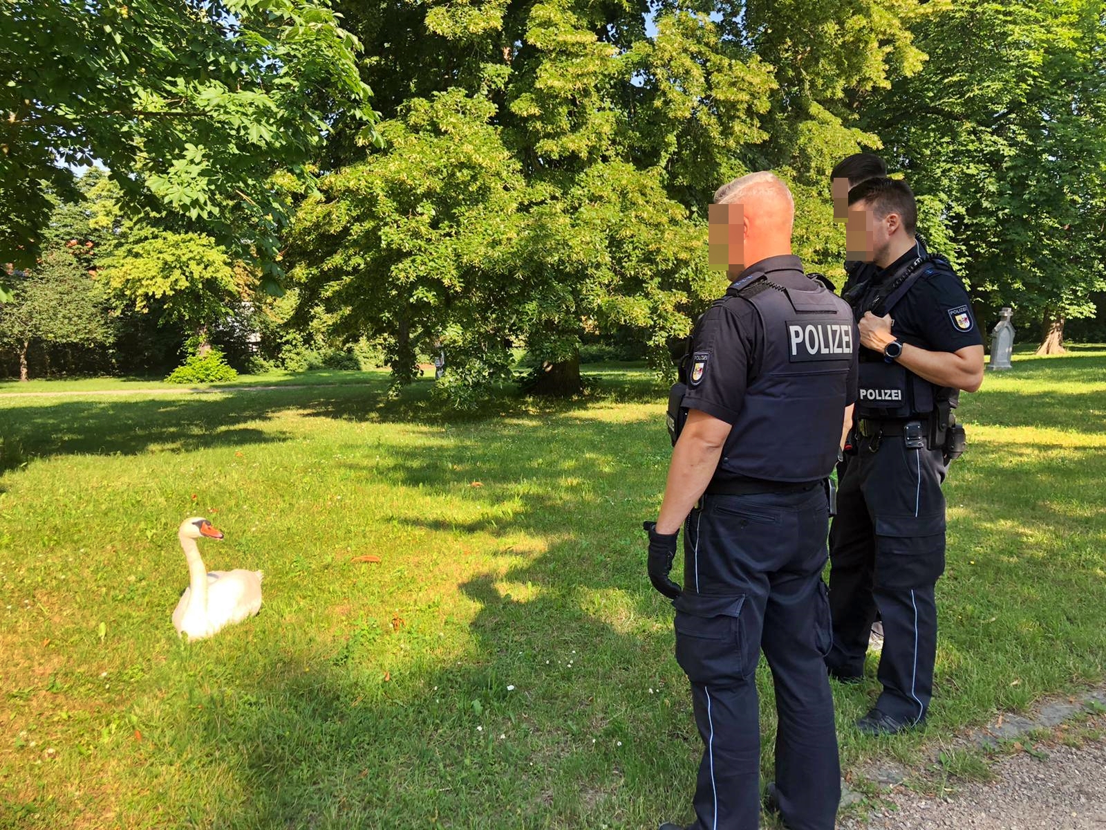 Auch am heutigen Vormittag wiederholte Helga dieses Treiben, wieder saß das Tier auf der Straße, wieder kam die Polizei zum Einsatz. Es kam zu nicht unerheblichen Verkehrsbehinderungen. Nur zögerlich verließ der Schwan die Straße und setzte sich brav auf die angrenzende Grünfläche.