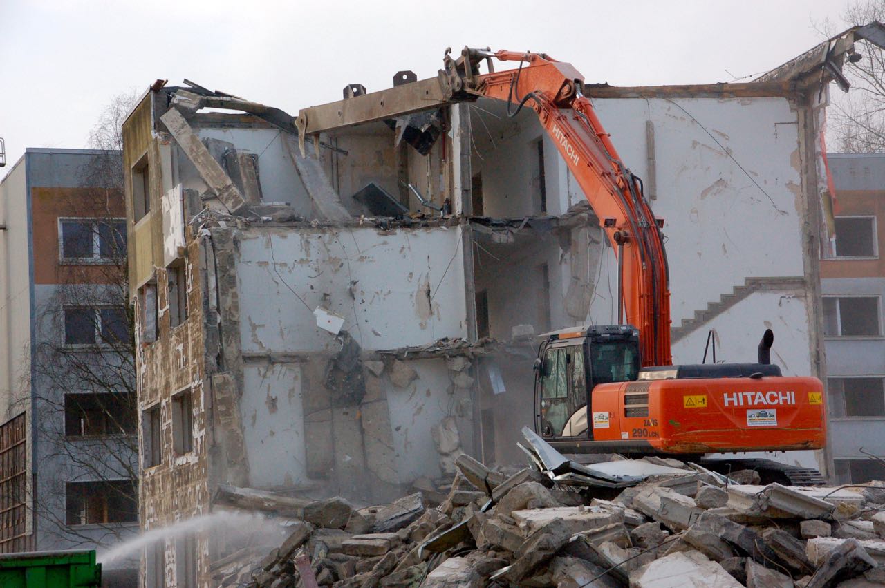 Innerhalb von etwa einem Monat wurde der WBS-70-Typenbau aus den 1970er Jahren erst entkernt und dann kam der Bagger.