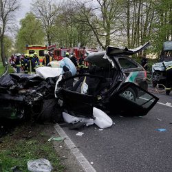 Für die Rettungskräfte war es einer der schwersten Verkehrsunfälle in diesem Bereich seit vielen Jahren. „Uns bot sich ein großes Trümmerfeld, fast alle Personen in den Fahrzeugen waren eingeklemmt“, sagte uns Einsatzleiter Jörg Meier von der Feuerwehr Blumenholz. „Die Zusammenarbeit aller eingesetzten Kräfte hat reibungslos funktioniert“, lobte Meier.