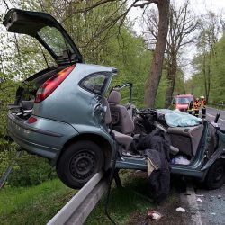 Den Einsatzkräften bot sich heute Nachmittag ein verheerendes Unfallbild. Auf der B96 am Abzweig Ehrenhof sind aus bisher ungeklärter Ursache zwei Fahrzeuge frontal miteinander kollidiert.