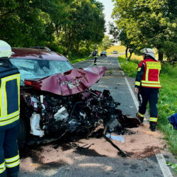 Die drei beteiligten Fahrzeuge waren nicht mehr fahrbereit und wurden durch ein örtliches Abschleppunternehmen geborgen. Es entstand ein Gesamtsachschaden von ca. 60.000 Euro. Die Landstraße musste während der Unfallaufnahme für dreieinhalb Stunden voll gesperrt werden.
