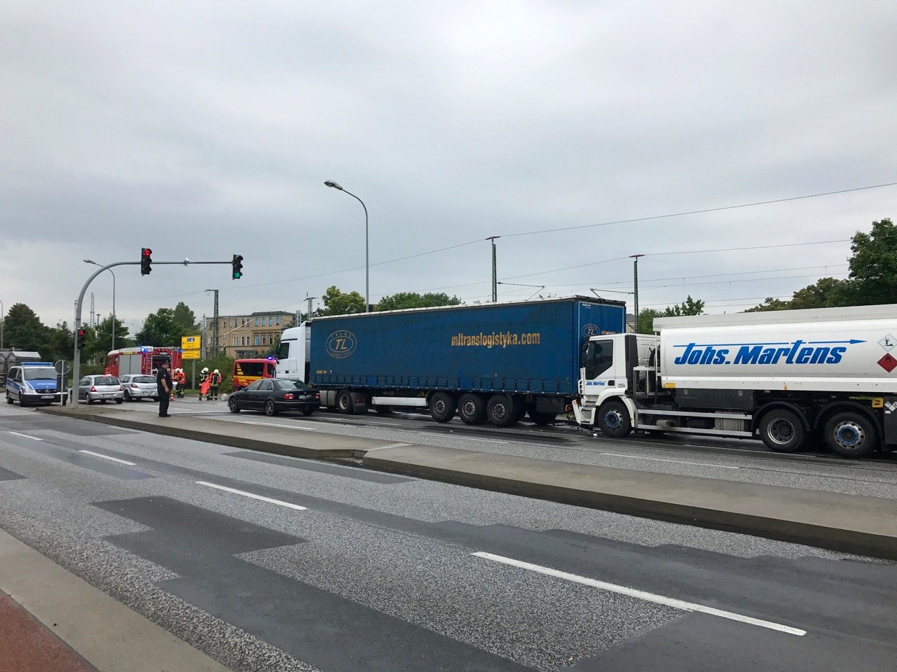 Auf dem Schweriner Damm ist heute Mittag an der Ampel in Höhe des Netto-Marktes ein Lkw auf einen anderen aufgefahren. Die zunächst gemeldeten Verletzungen eines Lkw-Fahrers haben sich zum Glück nicht bestätigt.
