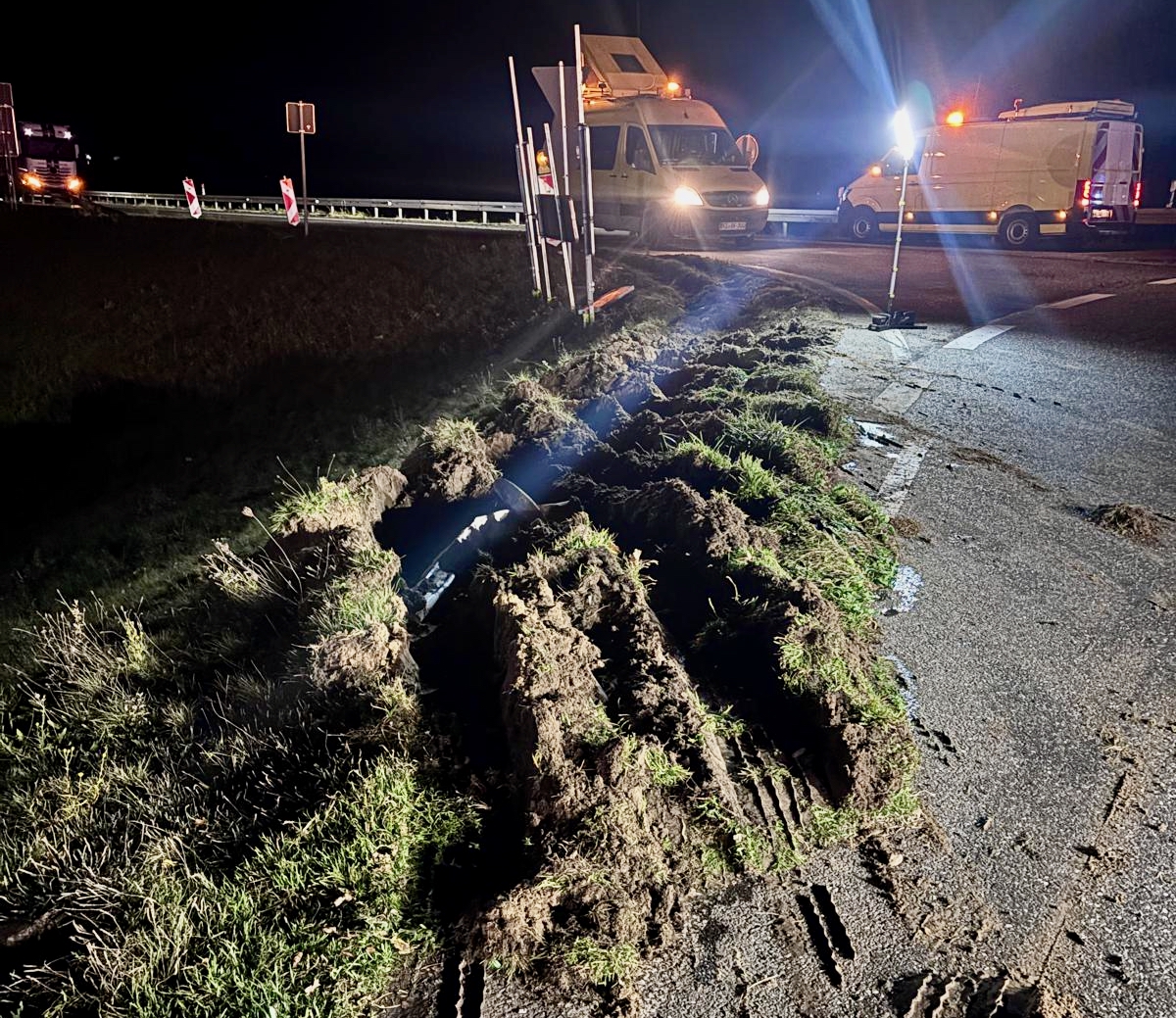 Dem betroffenen Fahrer, der von der Straße abgekommen ist, wurde die Weiterfahrt untersagt. Der Sattelschlepper steht jetzt erst einmal in der Nähe.