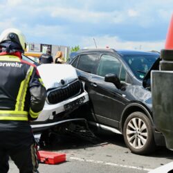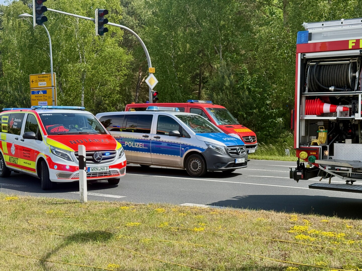 Da Betriebsstoffe von beteiligten Fahrzeugen ausgelaufen waren, kamen auch Kameraden der Warener Feuerwehr mit insgesamt drei Fahrzeugen und 19 Kameraden in den Einsatz. Die Freiwilligen betreuten zudem einige Beteiligte, die geschockt am Radweg saßen. Zwei kleine Kinder, etwa drei und vier Jahre alt, kamen zum Glück mit dem Schrecken davon. Neben den Notfallsanitätern kümmerten sich die Kameraden liebevoll um die Kleinen, sogar eine Besichtigung der Feuerwehrautos war für sie zur Beruhigung drin. Der Gesamtschaden beläuft sich auf geschätzte 50.000 Euro.