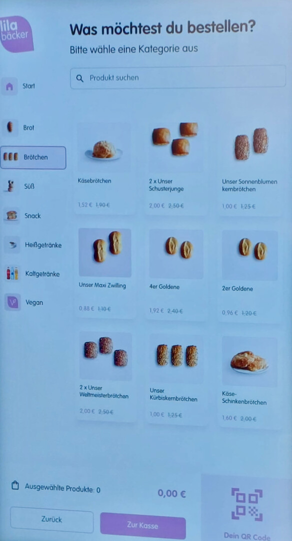 Die Palette reicht von Heißgetränken wie Kaffee, Schokotrunk über Kaltgetränke, unterschiedliche Snacks wie Brötchen mit Putenfleisch, mehreren Sorten Brot oder Brötchen. Ist alles eingegeben, kann man bargeldlos bezahlen, sagte Julius Fauber vom Unternehmen bakersoft, einem Jungunternehmen aus Bremen, auch Startup genannt.