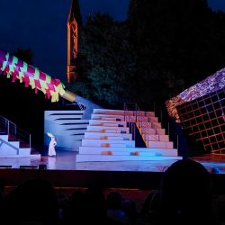 „Das konnten wir schon nutzen und die Kulissen für die Oper ‚Carmen‘ erarbeiten“, sagte Werkstattleiter Dirk Biallas gegenüber „Wir sind Müritzer“. Dabei handelt es sich um überdimensionale drehbare Treppen, die herumgedreht eine Taverne und ein Gefängnis ergeben, eine riesige Stierattrappe sowie ein großes Messer.