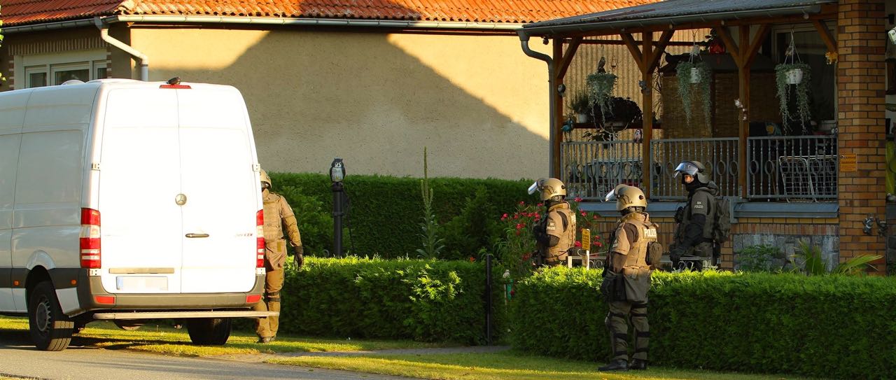 Es ist Punkt 6 Uhr heute Morgen als eine Eliteeinheit des Landeskriminalamtes Mecklenburg-Vorpommern in das kleine Dorf in der Nähe von Röbel fährt. Wenige Minuten später stürmen die schwer bewaffneten Beamten ein Wohnhaus in der Ortslage Fincken. Ein Beamter trägt einen Kettenanzug. Alles geht blitzschnell. Die Beamten verschaffen sich gewaltsam Zutritt zu dem Haus und sichern umgehend jeden Raum. In dem Gebäude können die SEK-Beamten einen 40-jährigen Mann festnehmen. Gegen ihn ermittelt die Polizei wegen des Verdachts des Verstoßes gegen das Kriegswaffenkontrollgesetz. Stundenlang durchsuchten Einsatzkräfte das Objekt, auch ein Spürhund kam zum Einsatz.