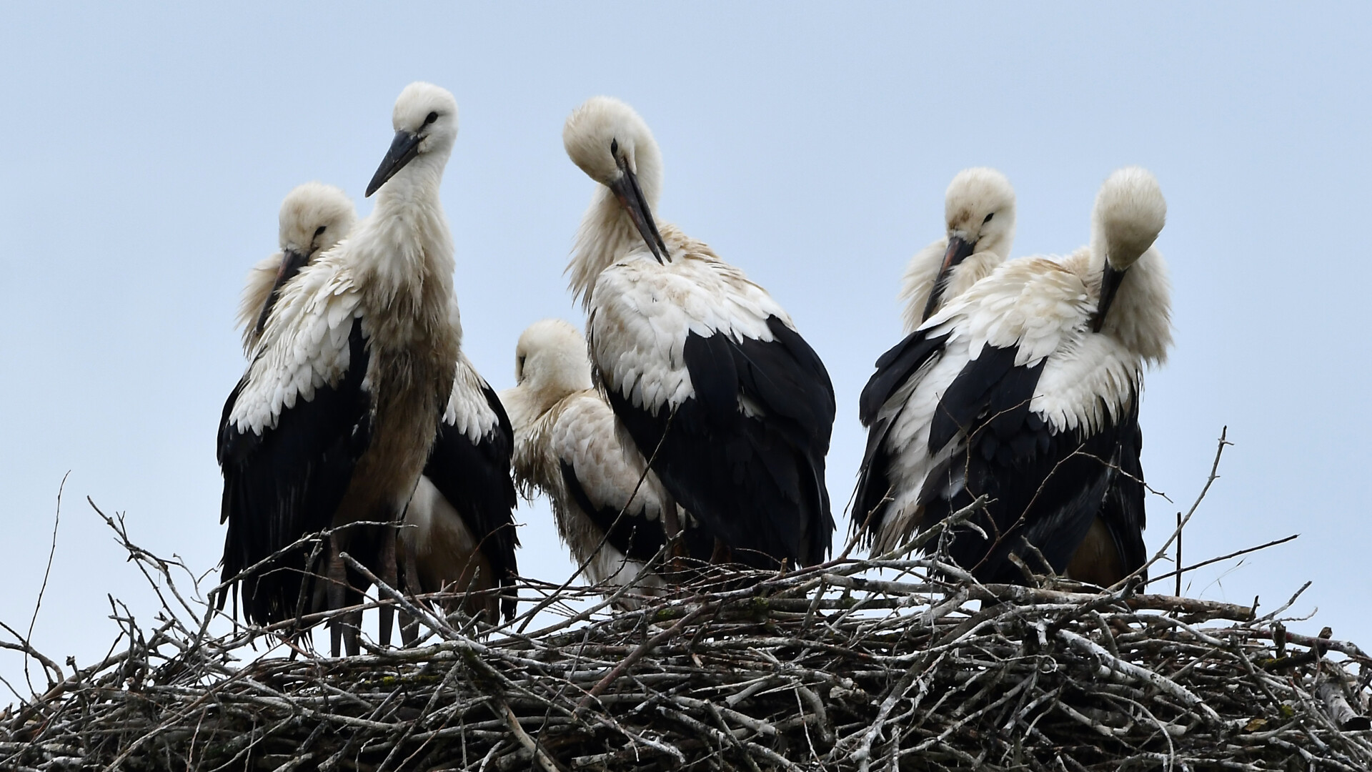 In der Regel ziehen Storchenpaare zwei, drei Kleine auf, manchmal auch vier, selten fünf, aber gleich sechs ist wie ein Hauptgewinn im Lotto. „Die Bedingungen in diesem Jahr sind gut, es gibt viel Nahrung, deshalb sehen wir in vielen Nestern derzeit auch vier Kinder“, berichtet Hans-Dieter Graf. Er ist übrigens ganz begeistert von der Sauberkeit und Ordnung im Kargower Nest: „Und das bei einer Großfamilie.“