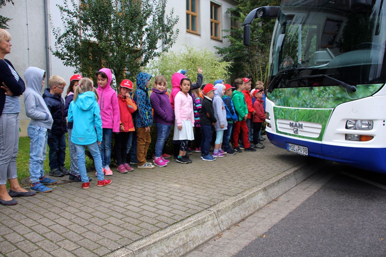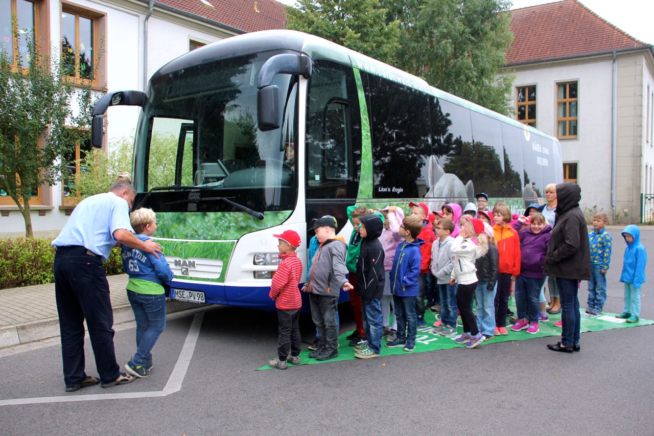 Ein weiterer Schritt zum sicheren Schulweg ist die Busschule in Zusammenarbeit mit der MVVG (Mecklenburg-Vorpommersche-Verkehrsgesellschaft mbH). Das Unternehmen übernimmt in der zweistündigen Ausbildung den praktischen Teil.