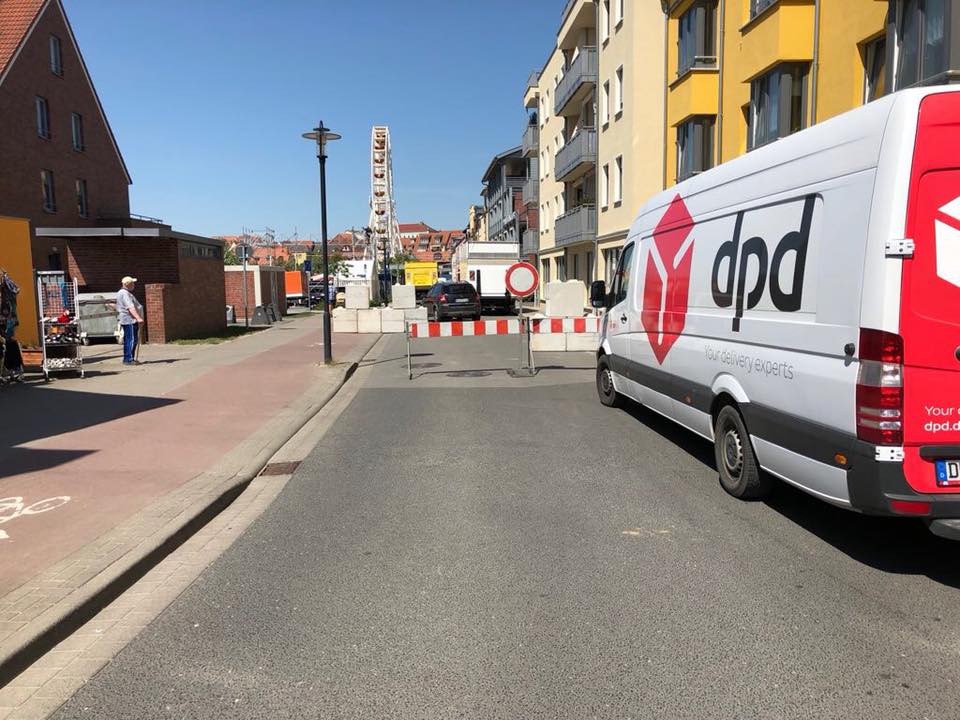 Diese Betonnblöcke und die Absperrung blockieren beispielsweise auch die Zufahrt für Feuerwehr und Rettungswagen zu mehreren Häusern in der Müritzstraße. Dort befindet sich unter anderem eine Einrichtung für das Betreute Wohnen – medizinische Hilfe ist dort häufiger von Nöten.
