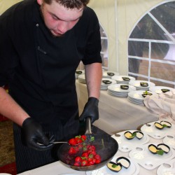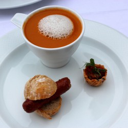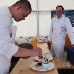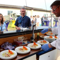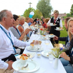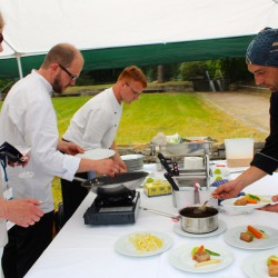 Nur ein Stückchen weiter, auf der Wiese unterhalb des „Kleines Meeres“ servierte Chefkoch Hendrik Türk ein leckeres Ratatouille-Schaumsüppchen sowie eine niedliche Müritz-Lammbratwurst. „Das ist ja richtig toll hier auf der Wiese, diesen Platz müsste man viel öfter nutzen“, so ein Kulinale-Teilnehmer. Und tatsächlich ist der Rasen an der Müritz ideal für Events mit Format.