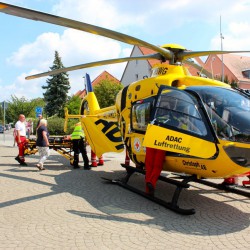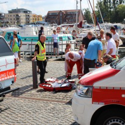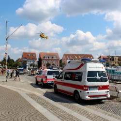 Großer Rettungseinsatz heute Mittag am Warener Hafen: Ein siebenjähriger Junge ist von einem Rad an- und überfahren worden. Dabei zog sich das Kind, das mit seinen Großeltern im Urlaub in Waren ist, vermutlich schwere Verletzungen zu. Auch der Rettungshubschrauber war im Einsatz, landete direkt am Hafen und flog den tapferen Jungen ins Klinikum Neubrandenburg.