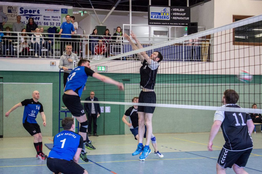 Auch im fünften Satz gaben die Müritzer das Heft nicht aus der Hand. Druckvolle Aufschläge störten den Spielaufbau der Gäste, das eigene Angriffspiel lief über Mitte und Außen und in der Feldabwehr und im immer stärker werdenden Block fassten die SKVler beherzt zu und belohnten sich selbst und die Zuschauer mit 15:11 und 3:2.