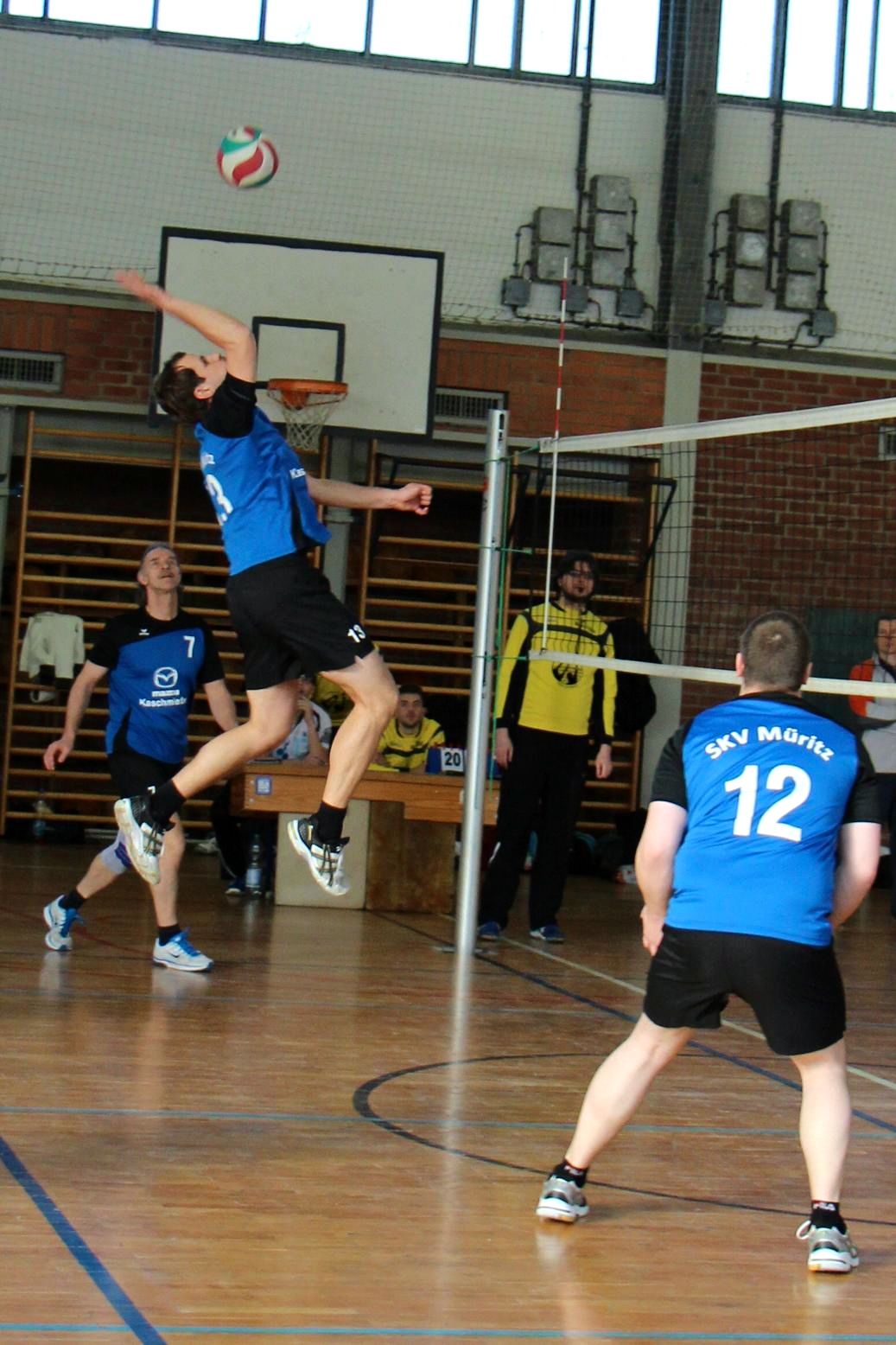 So hatte auch der erste Gegner (Malchow) trotz einiger starker Einzelaktionen nur im ersten Satz eine reelle Chance auf einen Satzgewinn. Nach wenigen Abstimmungsschwierigkeiten durch die veränderte Konstellation spielte der SKV immer befreiter auf und ließ die Inselstädter nicht zum Zug kommen. Das Ergebnis: 3:0 (26:24, 25:20, 25:9).