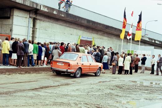 Das Bild zeigt den Tag der Eröffnung des Müritz-Aquariums unter der Herrenseebrücke 1982