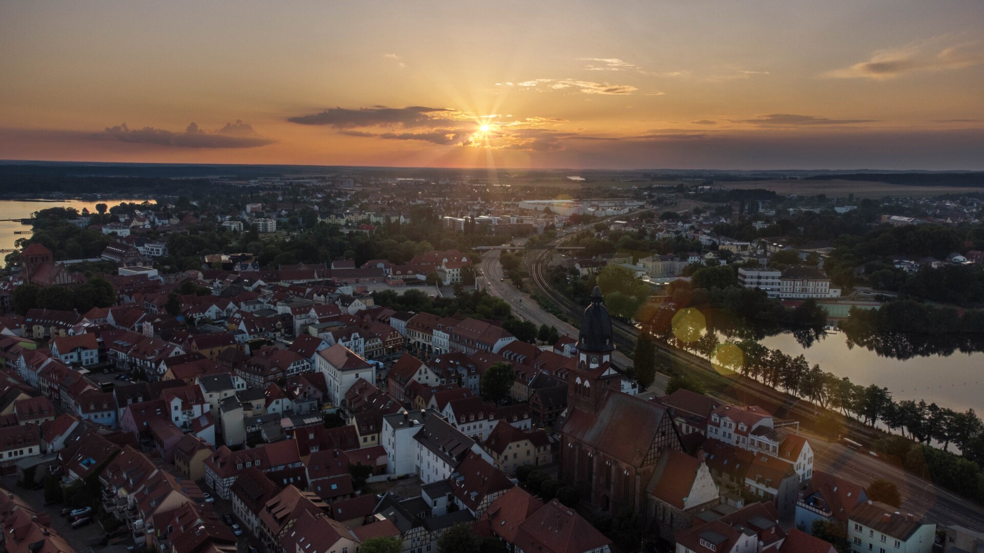 So sieht es von oben aus, wenn in Waren die Sonne untergeht.