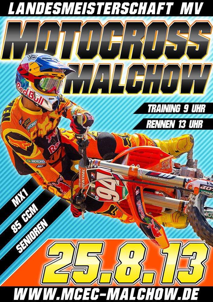 Malchow (PM). In der Inselstadt gibt es am kommenden Sonntag eine ganz besondere Veranstaltung, die sicherlich viele Zuschauer anziehen wird: Die Motocross-Landesmeisterschaften Mecklenburg-Vorpommern. Bereits zum zehnten Mal trägt der Motorsportverein MCEC Malchow e. V. diesen Wettkampf aus. Bis zum offiziellen Nennschluss haben sich 81 Starter in den verschiedenen Klassen gemeldet. Da es aber erfahrungsgemäß immer noch Nachnennungen gibt, rechnet der Malchower Verein mit etwa 100-120 Fahrern. Am Sonntag ist ab 9 Uhr Training und ab 13 Uhr starten die Rennen.