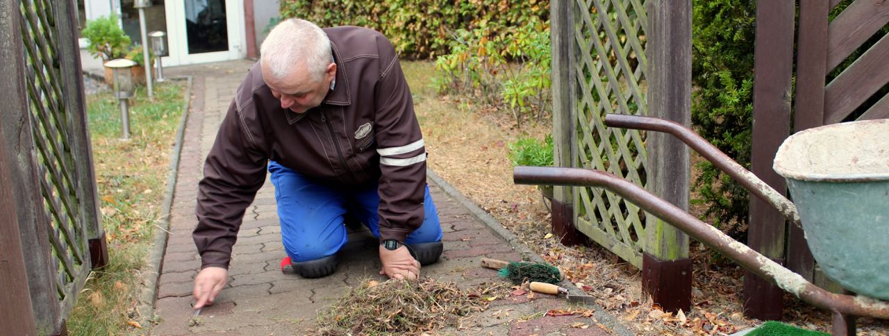 In diesen goldenen Herbsttagen erneuert er Farbanstiche und befreit Wege und Parkplätze von Unkraut. „Ich bin gern an der Luft, und körperliche Arbeit macht mir nichts aus“ sagt Herr Klawitter selbst.