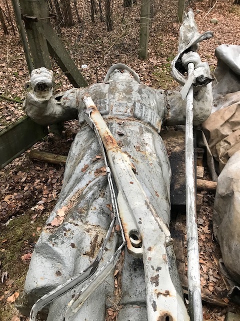 Das Anstaltsgelände – und viele weitere Flächen und Häuser in und um Neustrelitz bis Fürstenberg – hatte die Rote Armee nach Kriegsende besetzt. Viele der Militärbauten wurden auch am Domjüchsee bereits abgerissen. Der gusseiserne Rotarmist soll zunächst auf Kosten der Stadt als Eigentümer noch saniert und dann am Domjüchsee aufgestellt werden.