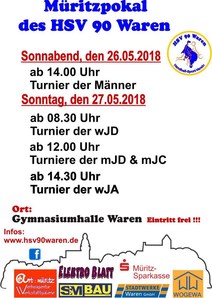 Der HSV 90 Waren richtet heute und morgen das alljährliche Müritzpokal-Turnier in der Sporthalle am Gymnasium aus. Die Handballer haben Teams aus MV, Berlin, Brandenburg und Schleswig-Holstein zu Gast.