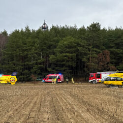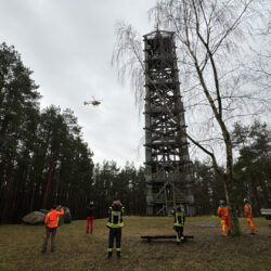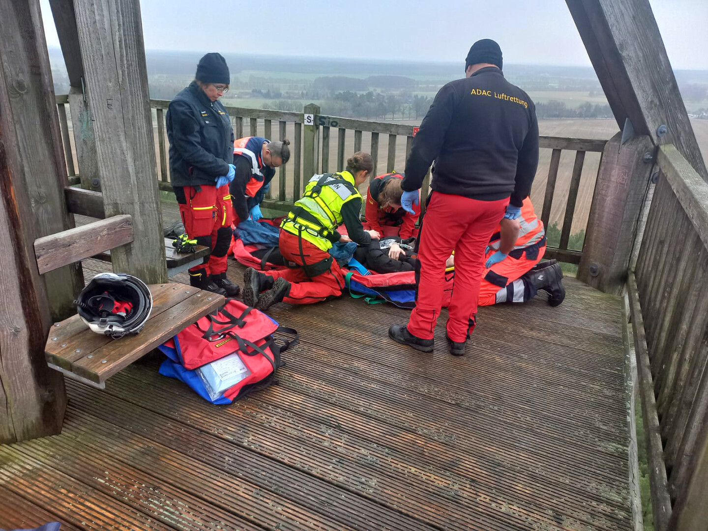 Nicht alltäglicher Einsatz für die Höhenrettung in Brandenburg. Nachdem ein Anfang 20-Jähriger auf einem 45 Meter hohen Aussichtsturm gestürzt war, dann rückwärts die Treppen herunterstürzte und nach einer Stunde Bewusstlosigkeit den Rettungsdienst alarmierte, eilten zahlreiche Rettungskräfte zur Einsatzstelle nach in die Nähe von Heiligengrabe bei Wittstock. Aufgrund der schwierigen Auffinde-Situation entschieden sich die Ersthelfer, Spezialisten der Höhenrettung anzufordern. Die aus Hamburg eingeflogenen Höhenretter konnten den schwerst verletzten Patienten, nachdem er transportfähig war, retten. Er wurde in ein Klinikum nach Hamburg geflogen.