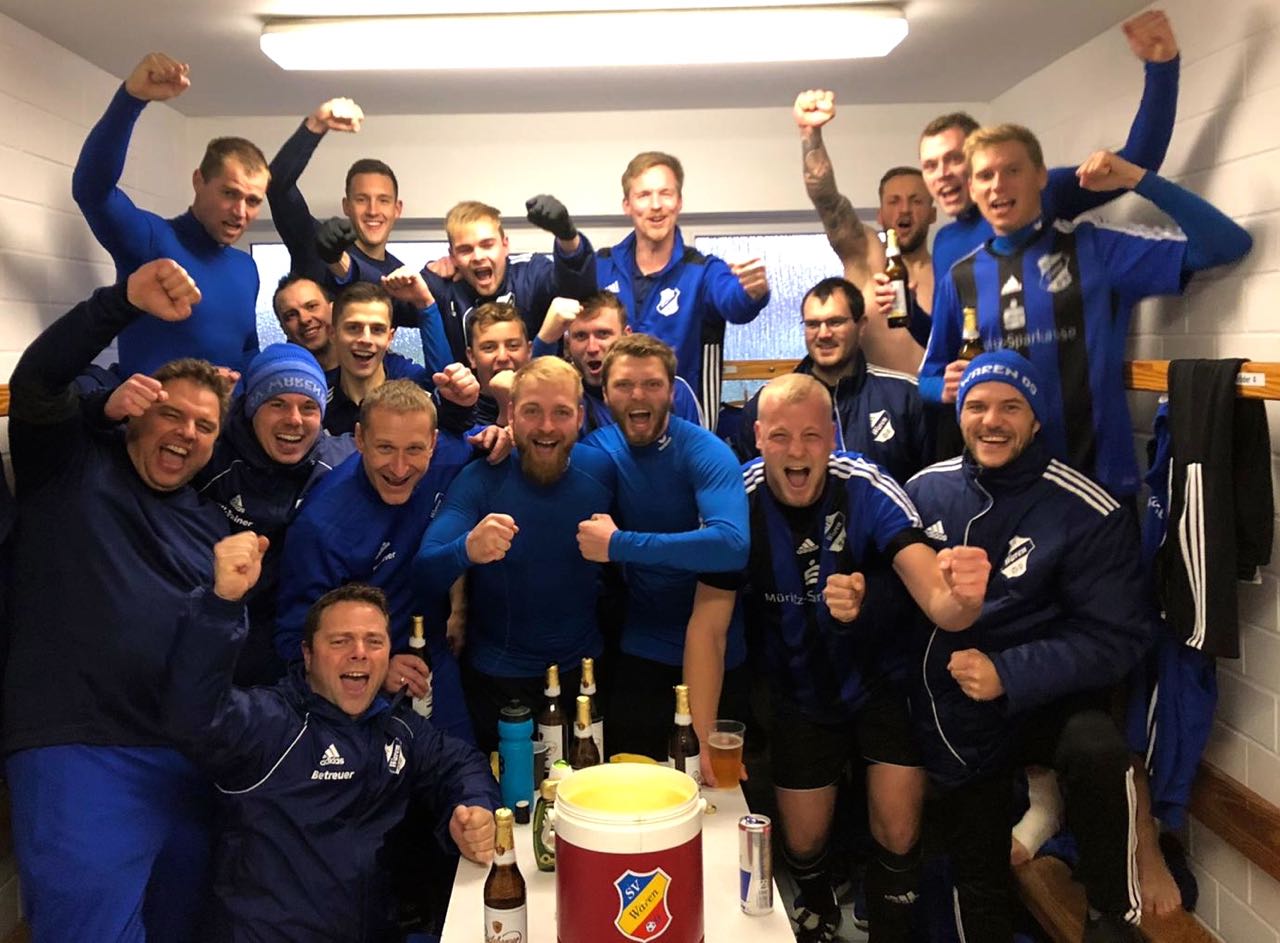 Sie haben allen Grund zum Jubeln: Im Pokalspiel gegen Anker Wismar haben die Spieler des SV Waren 09 gestern spektakulär gewonnen. Trotz eines Rückstandes von 1:2 und trotz Unterzahl siegten sie im Achtelfinale gegen den Tabellenführer der Verbandsliga 5:2.