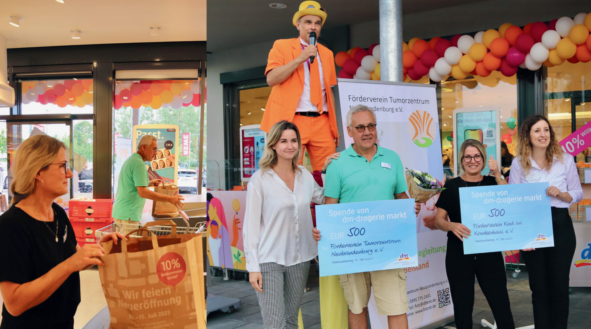 Kasse ein. Anschließend nahmen sie für ihre Vereine jeweils eine Spende in Höhe von 500 Euro von der Drogeriemarkt-Kette entgegen.