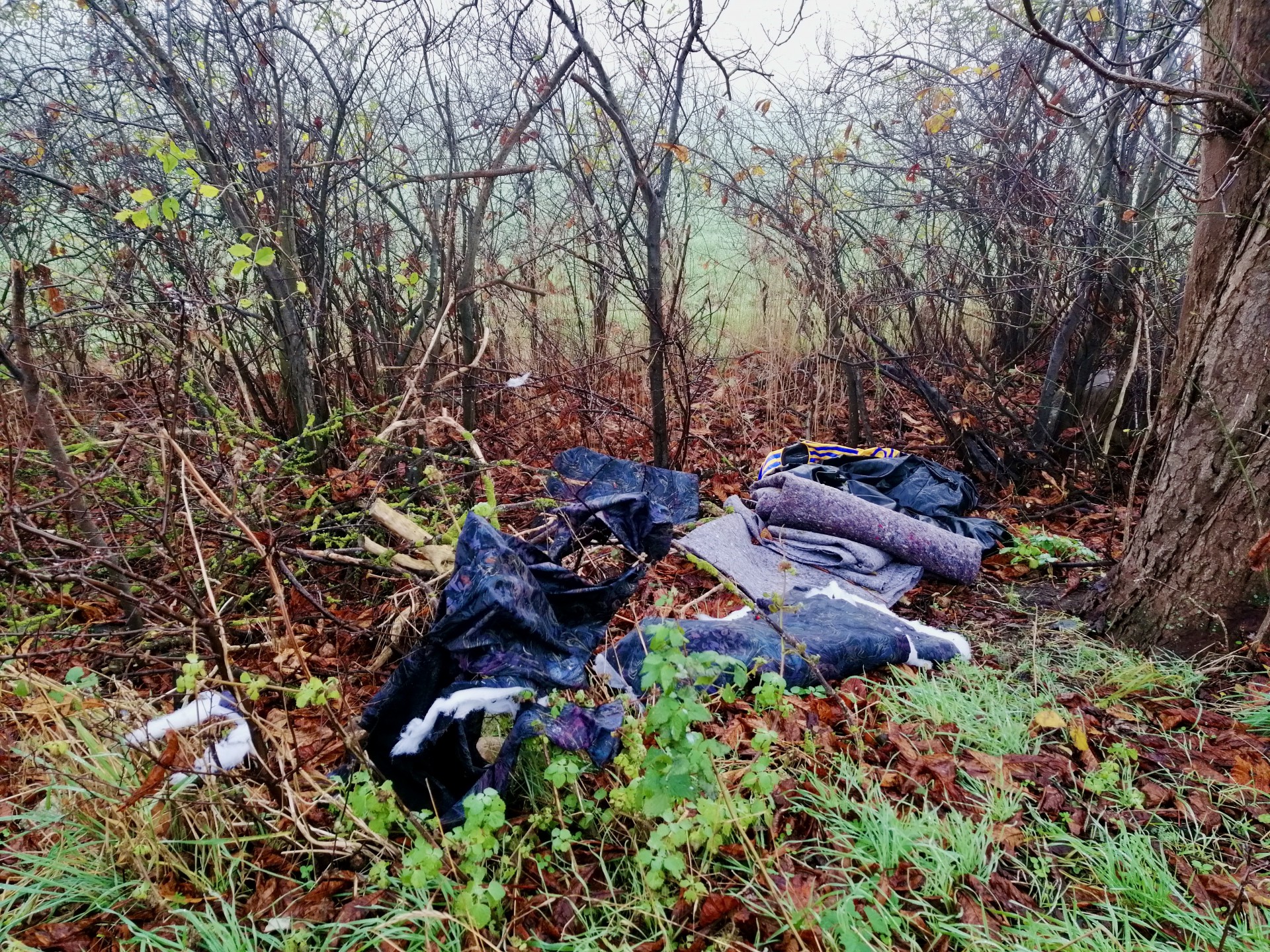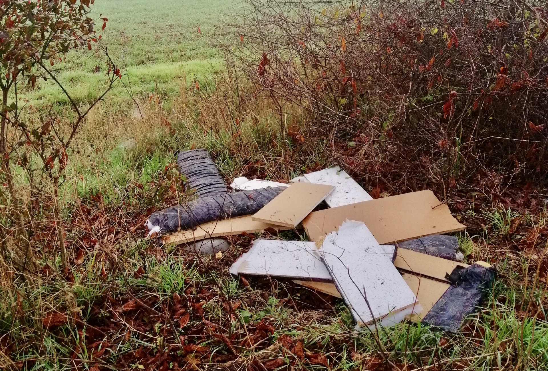 Der Umweltsünder hatte sich die Mühe gemacht und sein Sofa in handliche Stücke zerlegt – nur sein Gummipaddelboot nicht – und an mehreren Stellen in die Natur am Wegesrand verteilt.