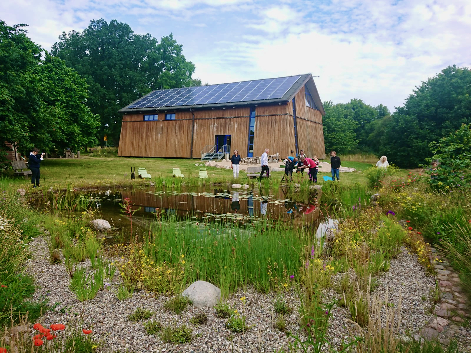 Im Hof des Meilers zeigte man ganz praktisch, was dort lebt. So fanden die Fachleute eine Dickkieferspinne, die zu den Webspinnen gehört. Sie ließ sich „wie ein Model“ filmen und machte es sich an Pflanzen am Teich bequem.